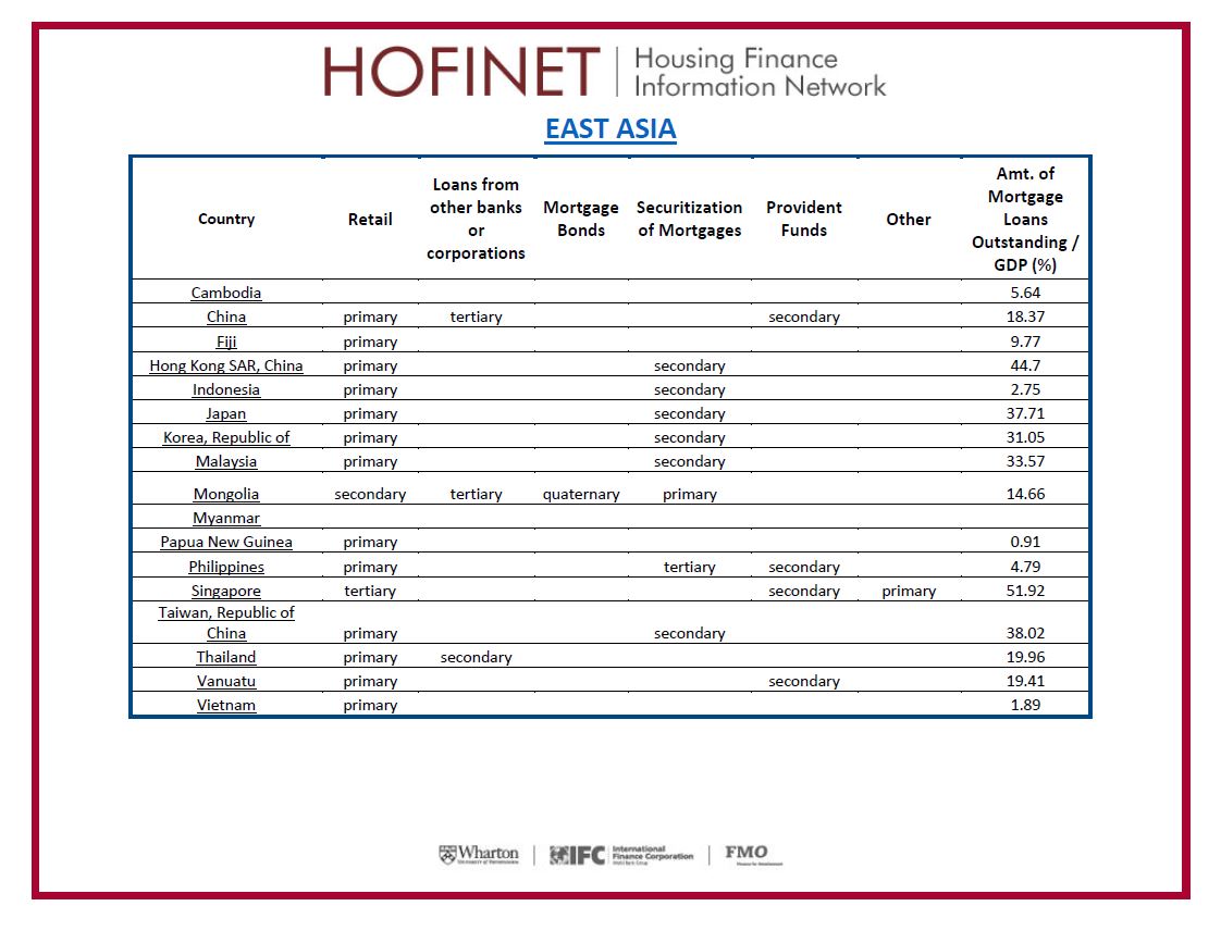 Country pages provide structured data on individual countries, with succinct, continuously updated and standardized information on their housing and housing finance system. The editor for each page is either a respected and credible professional from the country or a housing finance institution from the country. Editors are responsible for development and maintenance of content on their page and for responding to inquiries related to their site via a blog site or through email.