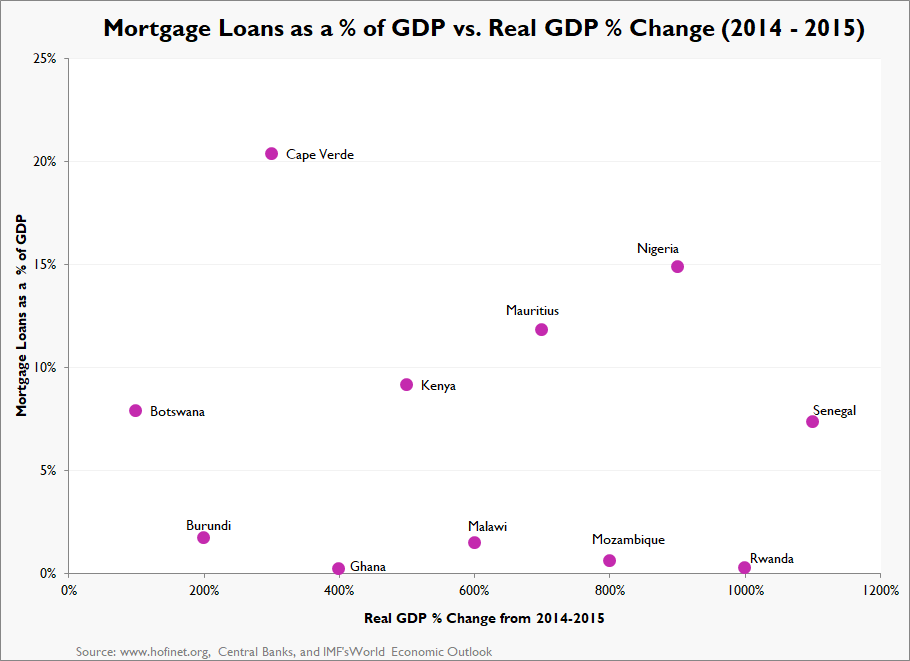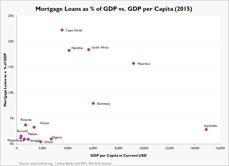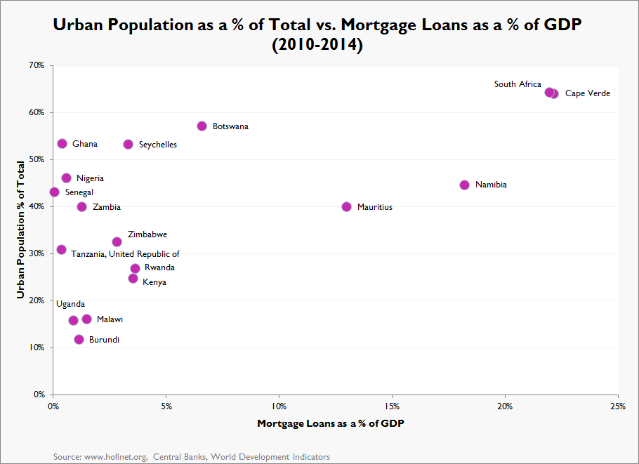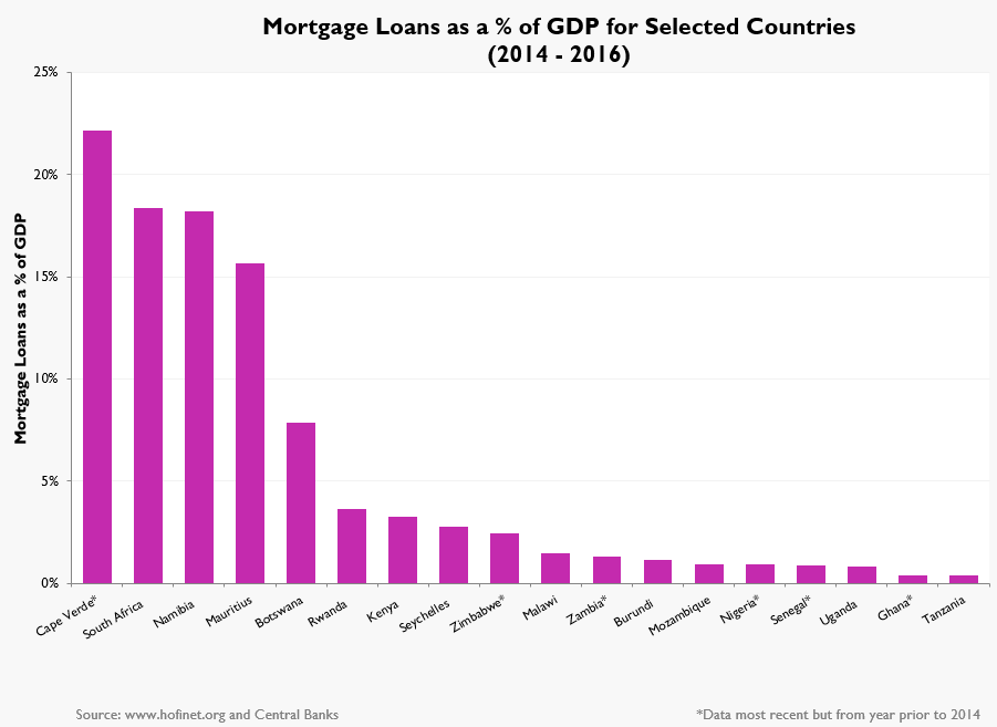 Sub-Saharan Africa is among the world’s fastest growing regions with a GDP growth of 4.7 percent in 2013, compared to 3.7 percent in 2012.1 Robust growth was seen in Nigeria,Ghana, Liberia,Mozambique,Tanzania,and Zambia.Nigeria’s GDP growth increased to 5.4 percent from 4.27 percent in 2012, while South Africa’s growth rate decreased to 1.9 percent in 2013, down from 3.6 percent in 2011.1 Importantly,GDP per capita in current USD has grown in all of Sub-Saharan Africa,with the exception of South Africa and Cape Verde.A steady decrease of the average inflation rate, from 10.1 percent in 2011 to 6.07 percent in 2013, is another positive economic indicator.1 Sub-Sahara’s urbanization level was 37 percent of total population at the end of 2013; only South Africa, Botswana and Cape Verde have urbanization levels above 60 percent.2 However, with 48.5 percent of the population living on less than $1.25 a day, Sub-Saharan Africa is still the poorest region in the world. Persistent low-income levels and poor access to financial services, have resulted in an extremely low percentage of adults that have credit outstanding – only around 5 percent of adults as of 2011.3 Housing finance in Sub-Saharan Africa is still at a very nascent stage. The amount of mortgage loans outstanding for the region was below 5 percent of GDP at the end of 2013. South Africa, Cape Verde and Namibia are the only countries with a mortgage sector larger than 17 percent of the GDP. Maximum Loan to Value ratios (LTV) for mortgages average 80 percent for the region, with only two countries exceeding that ratio -- South Africa and Cape Verde allow LTVs as high as 100. Financial institutions depend on customer deposits as the main source of funding for their mortgage portfolios. Lack of access to longer-term funds and institutional and legal constraints such as difficulties in obtaining title registration on properties and cumbersome eviction procedures in case of default, have all restrained the growth of the mortgage sector. The perceived high credit risk, high transaction costs and the lack of competition in the banking sector in most Sub-Saharan African countries have resulted in high margins and extremely high interest rates for mortgages, reaching upwards from 25 percent in some countries.4 In addition, very few financial institutions have developed non-collateralized loan products for housing. The products that are offered carry extremely high interest rates and have a short term, making them only feasible for gradual construction and home improvement. Sources:RELATED LINKS: